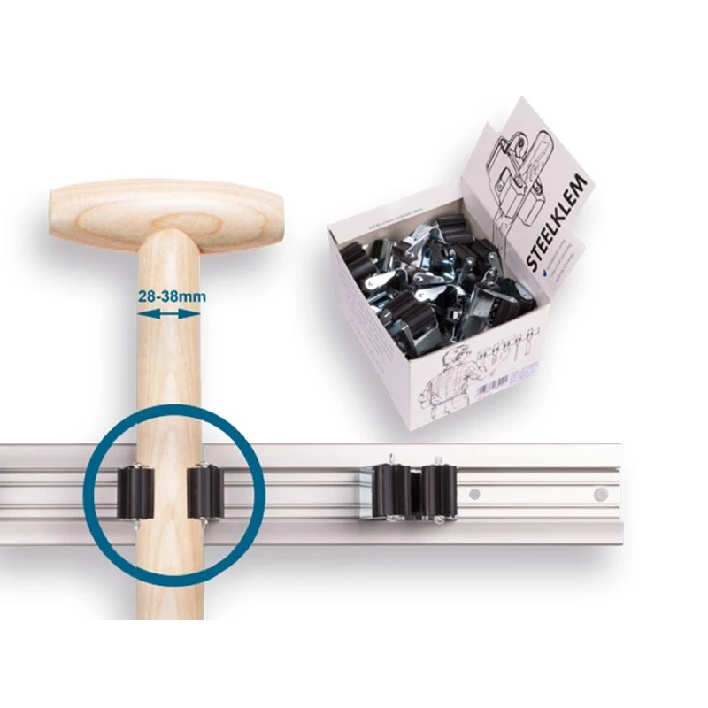 1 x Displaydoos PRAX met steelklemmen rond 30 mm. Inhoud / Prijs per 20 stuks.