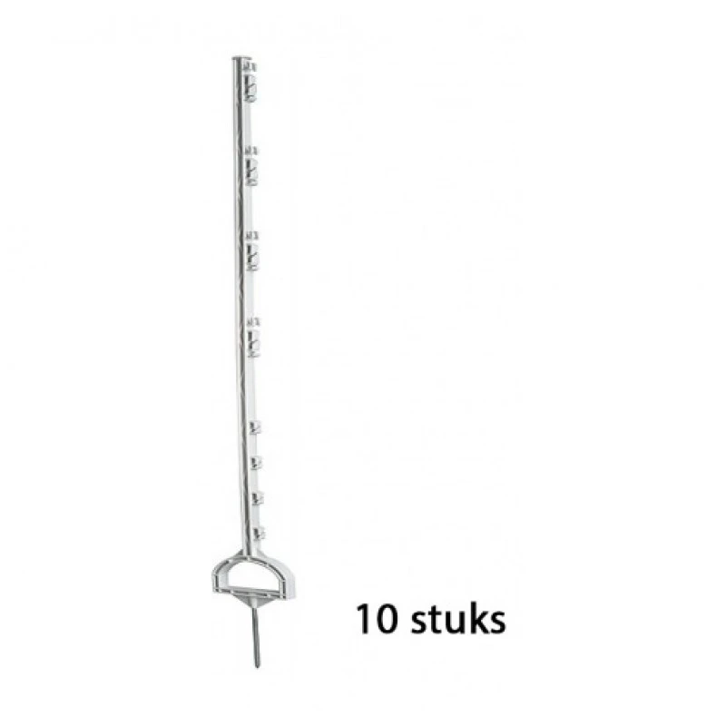 Met de 11 genummerde draadhouders is de stijgbeugelpaal voor bijna alle diersoorten te gebruiken. De stijgbeugelpaal is geschikt voor cord, kunststofdraad en lint tot 20 mm. De maximale afrasteringshoogte is 1,35 meter.