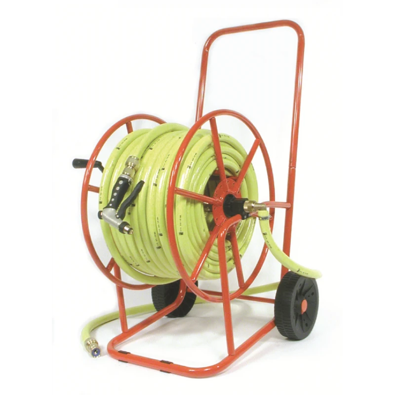 Deze professionele haspel is al gemonteerd met een 50 meter 3/4″ inch getricoteerd gele slang en de bijhorende 3/4″ inch messing snelkoppelingen.De haspel heeft een zeer stabiele voet zodat de haspel niet kan kantelen. De haspel is gemaakt van zeer sterk staal. De haspel heeft twee wielen zodat u de haspel makkelijk kunt verplaatsen. De snelkoppelingen bestaan uit een twee kraannippels, 3 snelkoppelingen 3/4″ inch en een pistoolspuit. Snij een deel van de tuinslang af, voor het watertoevoer van de kraan naar de haspel. De haspel is gemaakt van zeer sterk staal.
