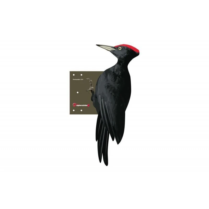 Zwarte SpechtAluminium plaat met silhouet van een levensechte Zwarte specht.Spechten zoeken een ander territorium als ze een soortgenoot hebben gezien, ze denkendat de omgeving al is bezet. Op deze manier laat de specht uw eigendommen met rust.Schroef hem vast op de plaats waar de schade is ontstaan.